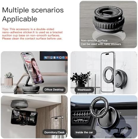 【Doğru kullanım için açıklama 1】Mag-safe özelliği bulunmayan telefonlar için 1 adet metal halka ile gelir. Kılıf içerisinde çekim gücü düşeceğinden ötürü metal halkaları kılıf üstüne yapıştırmanız gerekir. 【Doğru kullanım için açıklama 2】Ürünü cama, torpidoya yada masanıza vakumladıktan sonra vakumu çevirerek kilitleyin. 【Pürüzlü Yüzeyler için yapışkanlı şeffaf taban】Pürüzlü yüzeyler için kutu içerisinden yapışkanlı şeffaf taban çıkar. 【Kurulum】Uygulanacak pürüzsüz bölgeyi temiz bir bezle sildikten sonra, cam, torpido, ahşap, duvar, mutfak, metal yüzey, spor salonları, fitness ekipmanları, buzdolapları vb. pürüzsüz yüzeye koyun ve kilit mekanizmasını çevirin. i-Phone Mag-Safe özellikli telefonların kendi mıknatısına yapışır. Mag-Safe özelliği olmayan telefonlar için kutu içerisinde çift taraflı bantlı metal aksam çıkar. 【Bakım Talimatı】En az yılda bir kez sabunlu bir bez ile vantuzunu yıkayın. İlk günkü gibi tutacaktır. 【Ayarlanabilir Açı ve Katlanabilir Tasarım】Katlanabilir ve geri çekilebilir bir yapıya sahip bu manyetik vantuzlu telefon tutucu, optimum telefon kullanımı için çok yönlü görüş açıları sunar. Sadece 90 gram ağırlığındaki hafif tasarımı, cebinizde taşımayı kolaylaştırır ve onu ideal bir seyahat arkadaşı yapar. 【Daha Güçlü Manyetik Kuvvet】Bu vakumlu telefon tutucu 20 yüksek performanslı N52 mıknatısa sahiptir. Vakumlu manyetik araç telefonu tutucusunun manyetik gücü standart mıknatıslardan daha güçlüdür, bu da sabit ve güvenli bir tutuş sağlayarak telefonunuzu düşme korkusu olmadan kullanmanızı sağlar. 【Geniş Uyumluluk】Tüm telefonlarla uyumludur. 【Mini boy mükemmel tasarım】Her çantaya sığar, daha rahat seyahat edebilirsiniz. Çap: 60mm, ağırlık 80gr. GA40 Mag-Safe Ultra Sağlam Vakumlu Mini Araç Telefon Tutucu Ev Spor Salonu Ayna