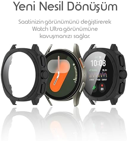 Galaxy 7 44mm için Kasa Dönüştürücü Kılıf Yeni Nesil Görünüm Veren PC + Temperli Ekran Koruyuculu Dokunmatiği Etkilemeyen Sert Kabuklu Kasa Koruyucu (Siyah)