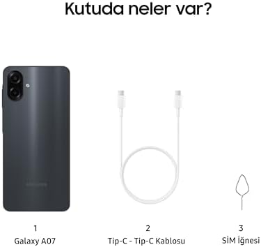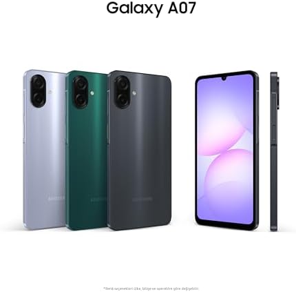 TASARIM: Şık ve ince tasarım. Galaxy A07'nin 7,6 mm inceliğindeki tasarımıyla mobil deneyiminizi bir üst seviyeye taşıyın. Renk seçenekleri: siyah, açık mavi ve yeşil. PERFORMANS: Oyun oynama, video izleme ve çoklu görevleri aynı anda gerçekleştirme gücü. Yeni 6 nm işlemcisiyle Galaxy A07, uygulamaları anında başlatır, oyunları akıcı bir şekilde çalıştırır ve video izleme, oyun oynama ve internette gezinme işlemlerini aynı anda sorunsuz bir şekilde gerçekleştirir. İŞLETİM SİSTEMİ VE SMR GÜNCELLEMESİ: Altı kez işletim sistemi yükseltmesi ve güvenlik güncellemesiyle güncel kalın. Hep güncel ve koruma altında olun. Galaxy A07, 6 büyük işletim sistemi güncellemesi ve 6 yıl koruma sunar, böylece telefonunuz yıllar boyunca güncel ve güvenli kalır. IP54: IP54 toz ve su koruması. IP54 derecesi sayesinde, telefonunuz toza ve bunun yanı sıra su sıçramalarına 360° dayanır. Bu da onu tozlu ortamlar, yağmurlu yolculuklar veya havuz kenarında eğlence için ideal hale getirir. EKRAN: 6,7 inç büyük ekran. Uçtan uca büyük 6,7 inç ekran, 90 Hz yenileme hızıyla izleme, sayfa geçiş ve kaydırma işlemlerini kusursuzlaştırır. Galaxy A07 LTE, Akıllı Telefon, 4GB RAM, 128GB Hafıza, Siyah, Büyük Ekran, 6 nm işlemcisiyle (Türkiye Garantili)