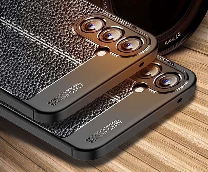 Galaxy A35 için Deri Dokulu Auto Focus Kamera Yükseltili Kılıf 360° Full Kasa Koruması Sağlayan Darbelere Karşı Dayanıklı Yumuşak ve İnce Tasarımlı TPU Silikon Kılıf