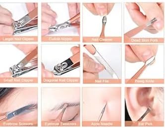 Gaman 12'Li Rose Gold Çantalı Taşınabilir Kişisel Bakım Seti Paslanmaz Çelik Cımbız – Manikür&Pedikür Seti