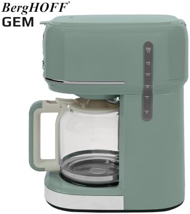 220-240V, 50Hz, 900W Kapasite: 1,5 litre Gösterge ışıklı açma/kapama düğmesi Paslanmaz çelik dekorasyonlu Su seviye göstergesi Gem Retro Filtre Kahve Makinesi – 900 W, 1, 5 L Cam Demlik | Mint Yeşil