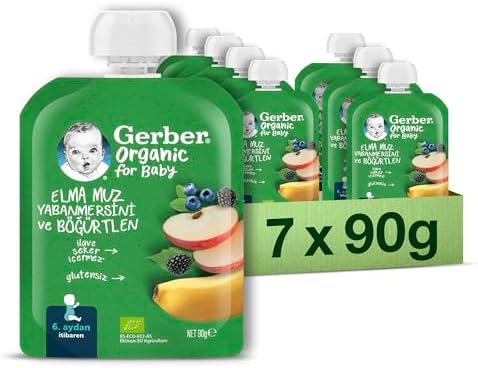 Gerber Organik Muz Yabanmersini Böğürtlen ve Elma Püresi 90 g x 7