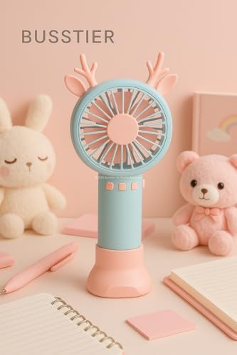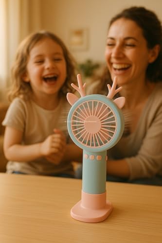 Geyik Boynuzlu Mini El Fanı, 20 cm Taşınabilir Şarjlı Masaüstü Fan, Tek Kademeli Hız, Kompakt Fan Tasarımı, 7 cm Çaplı Vantilatör, USB Şarjlı, Çocuklar İçin Uygun