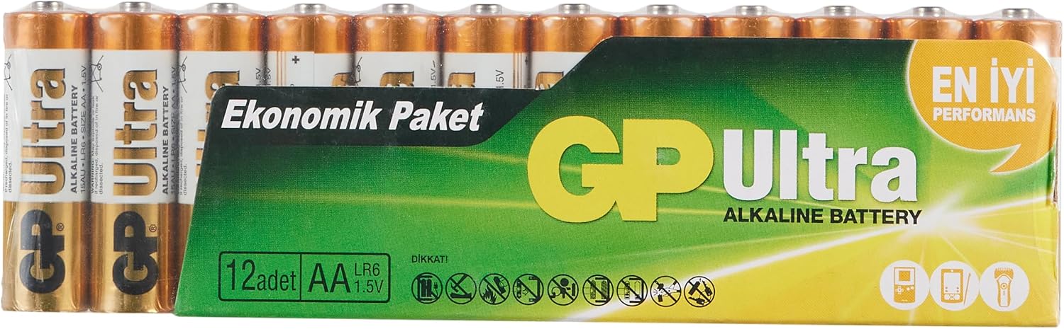 Menşe Ülke: Çin Gp ultra alkalin aa kalem pil 1.5 volt 12'li paket GP15AU Ultra Alkalin LR6/E91/AA Kalem Pil, 1.5 Volt, 12'li Paket, Bakır/Siyah/Beyaz