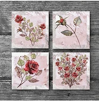 Gül Çiçek Taş Bardak Altlığı Seti – 4 Parça – Dekoratif, Rustik Mutfak Aksesuarı, 10×10 cm, Kaydırmaz Tabanlı, Şık ve Dayanıklı SC129