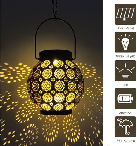 Güneş Enerjili Dekoratif Led Fener / Askılı Bahçe Feneri / Bahçe Dekorasyon Feneri / GT-SL25G