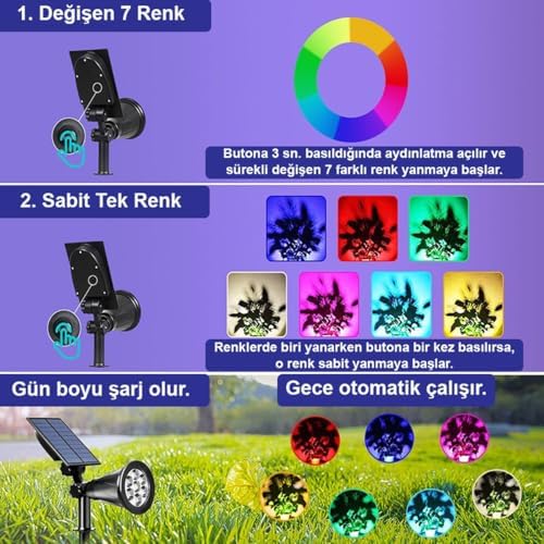 Güneş Enerjili Renk Değiştiren 7 Ledli Bahçe Aydınlatma/GT-SL04