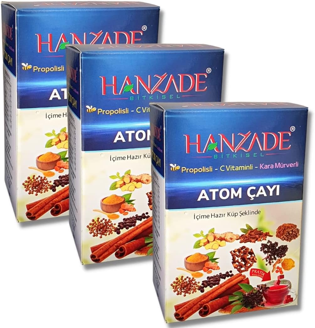 Propolisli – C Vitaminli – Kara Mürverli Atom Çayı – İçime Hazır Küp Şeker Şeklinde Hanzade Bitkisel Propolisli – C Vitaminli – Kara Mürverli Atom Çayı Kış Çayı 150 Gr x 3 Adet