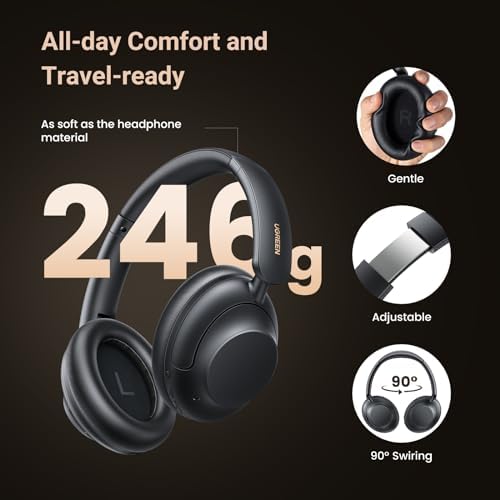 HiTune Max5 Hibrit Aktif Gürültü Engelleyici Kablosuz Kulak Üstü Kulaklık, Siyah