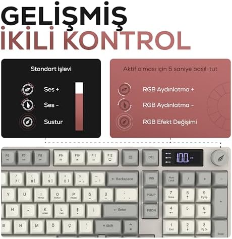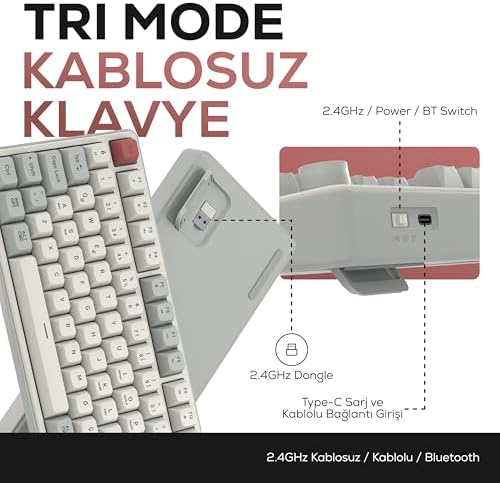 Gaming Klavye HK258 Membrane LCD RGB Kablosuz/Bluetooth Siyah Turuncu Full Türkçe Gaming Klavye (Kırmızı Haki)