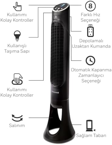 HONEYWELL QuietSet Tower HYF290, 8 Hız Ayarı, 80 Derece Salınım, Zamanlayıcı Fonksiyonu, Uzaktan Kumanda, Kısma Seçenekleri