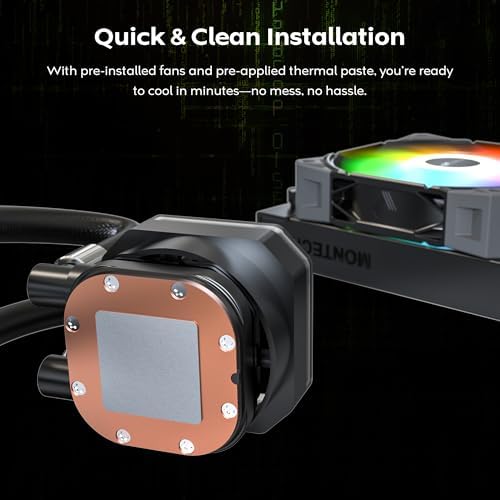 gürültü seviyesi: 31.58 decibels HyperFlow Dijital 360 CPU Sıvı Soğutucu, 3100 RPM Pompalı 360 mm AIO, 3×120 mm E28 ARGB Fanlar, Gerçek Zamanlı Dijital Ekran, Intel ve AMD Desteği (Siyah)