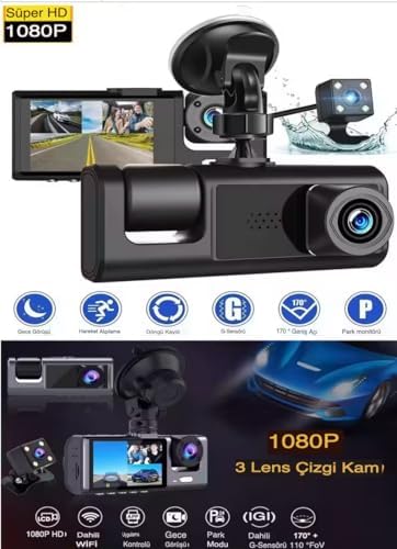 Araç İçini dışarıyı ve arkayı kontrol edebileceğiniz harika bir kamera İçi 3 Kameralı Süper HD 1296P Geri Görüş Ön Kamera İç Kamera İçi 3 Kameralı Süper HD 1296P Geri Görüş Ön Kamera İç Kamera
