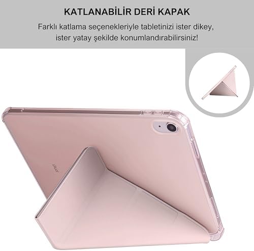 iPad 10.9 inç 2022 10. Nesil Uyumlu Smart Kılıf, Pencil Kalemlikli, Trifold, Esnek, Mat, Darbeye Tam Dayanıklı Tablet Kılıfı (Pembe)