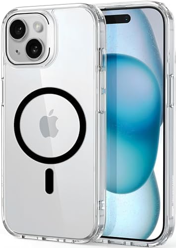 iphone 15 için Serisi ile uyumlu Kesinlikle Sararmayan Ultra Şeffaf Kristal Berraklığında Akrilik Sert Kılıf Metal Tuşlar ve Güçlü Manyetik Premium Kılıf (Siyah)