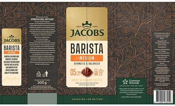 Filtre kahve Jacobs Barista Orta Öğütülmüş Filtre Kahve, 200 Gram