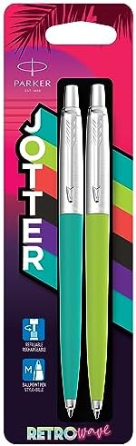 Jotter Originals Tükenmez Kalemler | Retrowave Koleksiyonu | Karayip Mavisi ve Elma Yeşili | Mavi Mürekkep | Orta Nokta | 2 Adet