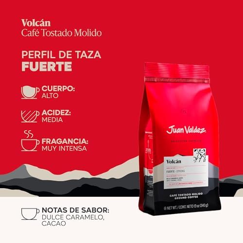 Strong / Güçlü – Gövde: Yüksek – Asidite: Düşük Tatlı karamel ve kakao notaları Espresso hazırlamak için en ideal Kahvedir Güçlü, koyu kavrulmuş Koyu kavrulmuş ve espresso sevenler için ideal olan bu eşsiz karışım, yüksek gövdesi, hafif asiditesi ve tatlı karamel notaları ile tanınır. Juan Valdez Volcan Öğütülmüş Güçlü Kahve, 250g, Premium Selection, Koyu Kavrulmuş