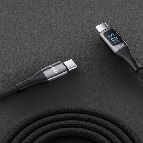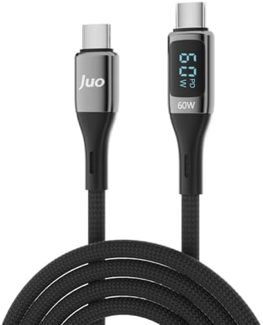 Juo 60W Dijital Led Ekranlı Örgülü USB Type-C to Type-C Hızlı Şarj ve Data Kablosu 2 Metre