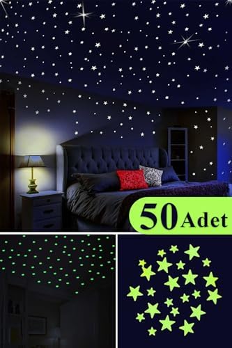Karanlıkta Parlayan Fosforlu Ay ve Yıldız Tasarımlı Dekoratif (50 Adet Yıldız)