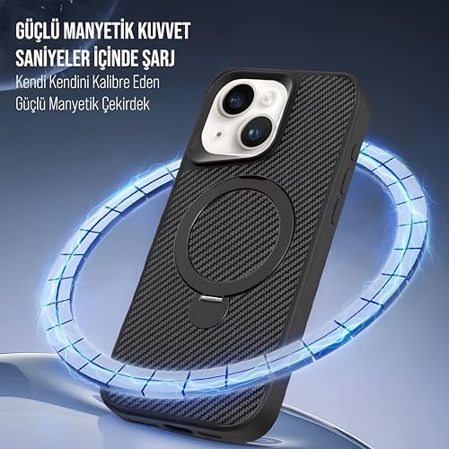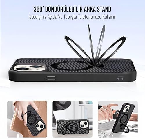 Karbon Fiber Materyal Stand Özellikli Lens Çerçeveli ve Sararmayan Güçlü Darbe Emici Premium Kılıf (Siyah, 13/14)