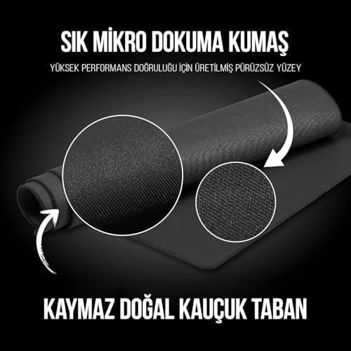 KAYMAZ TABAN, MAKSİMUM STABİLİTE: Kauçuk kaymaz tabanı sayesinde masanızda sabit durur, kayma veya hareket etme sorunu yaşamadan rahat kullanım sunar. YÜKSEK HASSASİYET, OPTİK & LAZER UYUMLU: Özel dokulu yüzeyi, hem optik hem de lazer sensörlü farelerle mükemmel uyum sağlar, kesintisiz ve hassas hareket imkanı sunar. ERGONOMİK ve KONFORLU KULLANIM: Orta yumuşaklıktaki yüzeyi fare hareketini kolaylaştırır ve yorgunluğunu azaltır, ofis kullanımı ve uzun saatler süren oyun seansları için ideal konfor sağlar. SU GEÇİRMEZ ve KOLAY TEMİZLENEBİLİR YÜZEY: Sıvı dökülmelerine karşı dayanıklı kaplama sayesinde kahve veya su döküldüğünde kolayca temizlenir, uzun ömürlü kullanım sağlar. ŞIK ve DAYANIKLI TASARIM: Aşınmalara karşı dirençli malzemelerden üretilmiş olup kenarları yıpranmaya dayanıklıdır; hem iş hem oyun için uzun süreli kullanım sunar. Kaymaz Tabanlı Mouse Pad, Ergonomik ve Su Geçirmez Yüzey, Hassas Optik ve Lazer Algılama, Dayanıklı ve Konforlu Kullanım, Ofis & Gaming Uyumlu (Siyah, 28×40 cm)