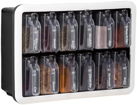 Kendinden Yapışkanlı Baharatlık Seti, 12'li, Kaşıklı Kapaklı,Etiketleri ile Gönderilir Siyah Beyaz,