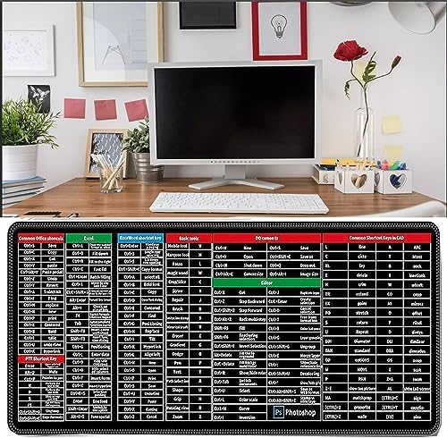 Key Süper Büyük Kaymaz Klavye Pedi – Ofis Yazılımı Kısayolları Desenli, Kaymaz Klavye Pedi, Ofis Yazılımı Kısayolları için Hızlı Anahtar Klavye Pedi Mousepad (800 x 300 x 3 mm)