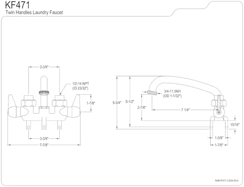 Prinç Yapı Güverte Montaj Kurulumu Standart 1/2 inç IPS Bağlantısı 2-7/8 “Emzik Boşluğu 7-1/4 “Bacalı Erişim 5-3/4 “Emzik Yüksekliği Çift Kollu Kollar ADA Yönergelerini Karşılar Korozyona Dayanıklı Kaplama Temizlemesi Kolay KF471 Çamaşır Bataryası, 7-1/8 “emzik erişimi, Parlak Krom