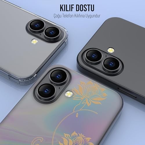 Kolay Kurulum Safir Parmak İzi Bırakmayan Anti-Reflective Kamera Lens Koruyucu (Siyah, 16 / 16 Plus)