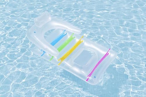 Ürün numarası: 43011 Maksimum taşıma kapasitesi: 90 kg / Maksimum kişi sayısı: 1 yetişkin. Boyut (şişirilmiş): 147 x 84 x 58 cm; şeffaf yüzey, renkli I-Beam konstrüksiyonu, şişirilebilir baş destekleri, sırt desteği ve kolçaklar. Dayanıklı 0,22 mm vinil, emniyet valfi. İçerik: Bir hava yatağı, bir onarım yaması. Kool Lounge 165 cm