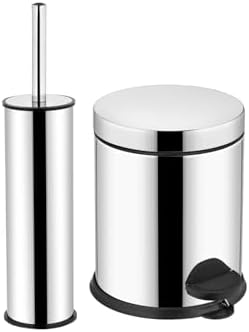 Krom 2 Parça Banyo Seti – 5LT Pedallı Banyo Çöp Kovası, Tuvalet, WC, Klozet Fırçası Seti