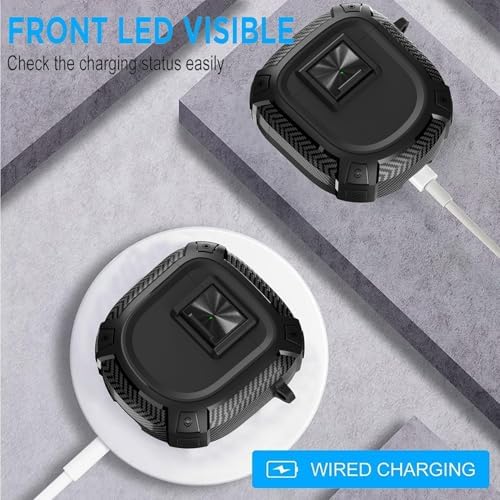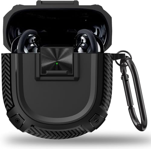 Kulaklık kılıfı, taşınabilir çizilmeye ve darbeye dayanıklı kablosuz kulaklık kılıfı, güvenlik kilidi düğmeli tasarım, kanca bağlantılı koruyucu kılıf (Siyah)