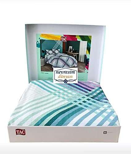 Tek Kişilik (Pike: 160×230 cm / Lastikli Çarşaf: 100×200 cm / Yastık Kılıfı: 50×70 cm) BASKILI-HAPPY DAYS Tek Kişilik Mavi Lewis Geometrik Desenli%100 Pamuk Pike Takımı, Mint, Tek Kişilik