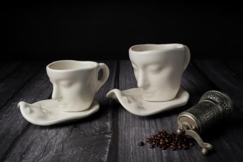 Life 2 Adet 110 ML Yüz Şekilli Seramik Beyaz Türk Kahvesi Fincan Takımı MIT1080