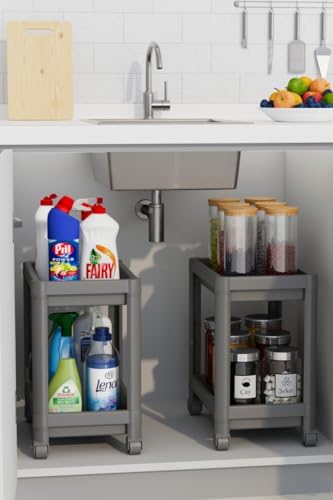 Life 2 Adet 2 Katlı Tekerlekli Tezgah Altı Gri Banyo Mutfak Rafı MIT1124