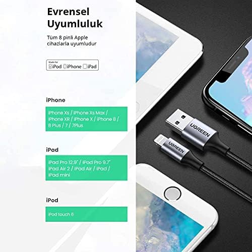 1.5 Metre Mfi Lisansı Lightning Örgülü Data ve Şarj Kablosu Siyah 1.5 Metre