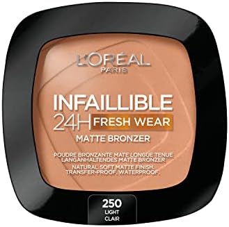 Uzun süre kalıcı ve matlaştırıcı L'Oréal Paris Infaillible 24H Fresh Wear Bronzlaştırıcı Pudra ile tanışın: 24 saate kadar kalıcı Mat bitişli. Suya ve neme dayanıklı Transfere dayanıklı Tüm cilt tipleri için uygun Tüketici testi, 101 kadın L'ORÉAL PARIS Infaillible 24H Fresh Wear Soft Matte Bronzer 250 Light