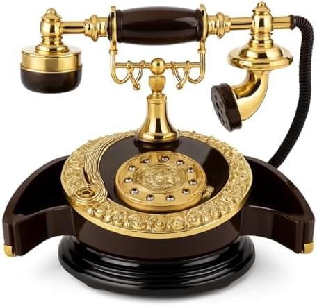 Boyut: Yaklaşık 18 × 17 × 14 cm. Boyut: Yaklaşık 18 × 17 × 14 cm. Tasarım: Altın detaylı retro döner telefon figürü. Malzeme: Parlak plastik ve metal alaşım karışımı, el işçiliği dokulu yüzey. Fonksiyon: Rakamları çevirdiğinizde kurulur; ahize kaldırıldığında melodi çalar. Lüks Retro Altın Döner Telefon Figürlü Kurmalı Müzik Kutusu – Nostaljik Antika Görünümlü Melodili Masa Üstü Dekor