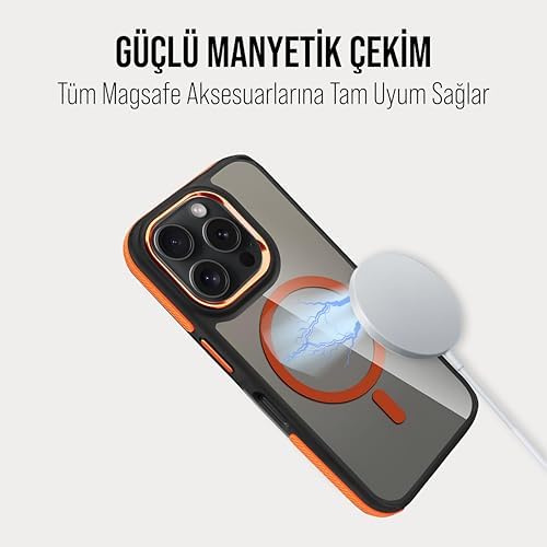 MagSafe ile Uyumlu Askeri Sınıfta Koruma Sararma Önleyici Çizilmeye Dirençli Sırt Manyetik Telefon Kılıfı (Turuncu, 16 Pro)