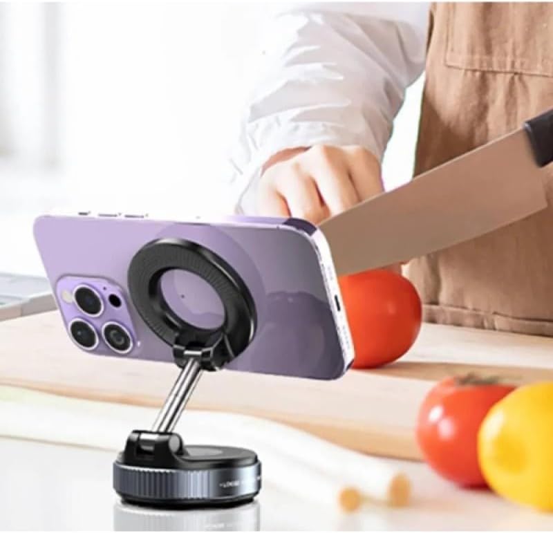 Manyetik Vakumlu Katlanır Araç Telefon Tutucu, 360 Derece Dönebilen, Güçlü Mıknatıslı, Akıllı Telefon Tutucu, Ayna, Cam, Torpido (Siyah)