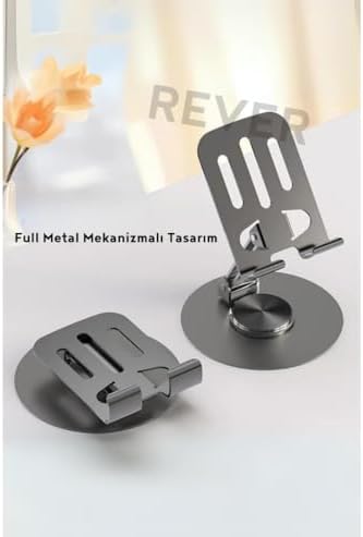 AYARLANABILIR TASARIM: 360 derece dönebilen, yükseklik ve açı ayarlı metal stand, telefonunuz için maksimum görüş açısı sağlar UYUMLULUK:, ve diğer tüm telefon modelleriyle uyumlu, masaüstü kullanım için ideal stand DAYANIKLI YAPI: Yüksek kaliteli metal malzemeden üretilmiş, 350 gram ağırlığında sağlam ve uzun ömürlü tasarım KOMPAKT BOYUTLAR: 20x15x5 cm boyutlarında, masanızda minimum yer kaplayan ergonomik tasarım PRATİK KULLANIM: Katlanabilir form faktörü sayesinde kolay taşınabilir ve depolanabilir özellik Masaüstü Telefon Tutucu Metal Katlanabilir 360° Ayarlanabilir Yükseklik ve Açı Ayarlı
