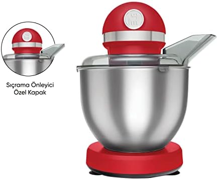 1500W motor gücü ile ideal çırpma, karıştırma ve yoğurma işlemlerini kolaylıkla gerçekleştirir. 5 L lik geniş kaseye sahiptir. 6 kademeli hız ayarı ve ek pulse fonksiyonu vardır. 3 farklı aparatı ile tüm çırpma, yoğurma ve karıştırma işlemlerinizi rahatlıkla yapabilirsiniz. Hamur kancası ile ekmek, makarna, börek gibi tüm hamur işleriniz için istediğiniz miktar ve kıvamda hamuru yoğurarak mükemmel sonuçlar elde edebilirsiniz. Düz karıştırıcı aparatı ile püre, krep gibi karışımları en ideal kıvamda hazırlayabilirsiniz. Hamur yoğurma ve karıştırma aparatları özel kaplamaları sayesinde yapışmaz ve kolay temizlenebilir. Yapışmaya karşı dirençli paslanmaz çelik kasesi ile kullanım esnasında müdahaleye gerek kalmadan homojen karışımlar elde edebilirsiniz. Tek hareketle açılabilen oynar başlıklı üst gövde ve güçlü tutucu ayaklar sayesinde hamur maksimum seviyede karışırken bile gövde stabil kalır. Özel tasarım çırpma teli kasenin her yerine ulaşarak hazne içinde gıda kalıntısı bırakmaz, en küçük porsiyonları bile rahatlıkla karıştırabilirsiniz. Balon çırpıcı ile yumurtayı sadece 1.50 saniyede kar kıvamına getirebilirsiniz. 17 farklı zengin renk seçeneği ile Mastermaid Stand Mikser her renkte dekore edilmiş mutfağa uyum sağlar. Aparatları bulaşık makinesinde yıkanabilir 3 farklı aparatı ile tüm çırpma, yoğurma ve karıştırma işlemlerinizi rahatlıkla yapabilirsiniz. Mastermaid Chef Stand Mikser Red 1500W 5 Lt