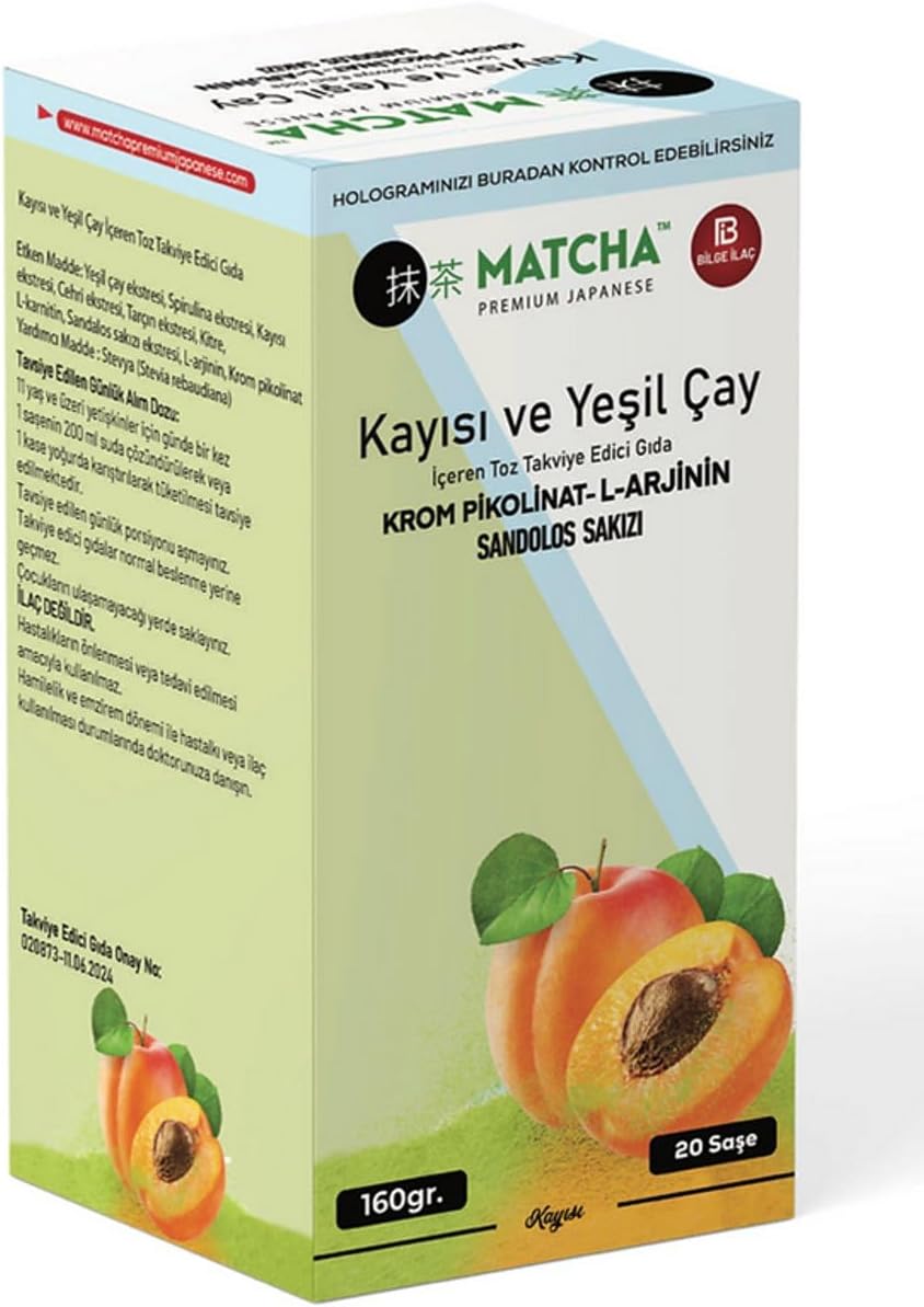 Doğal ve ferah aromalar içerir Matcha Premium Japanese Kayısı 20 Adet