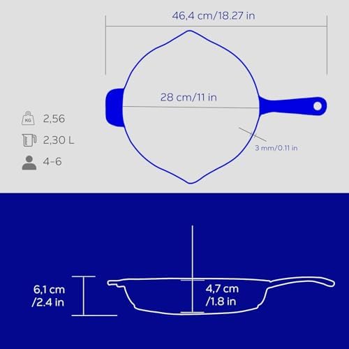 Kızartma Tavası Yuvarlak 28 cm Döküm Demir Yekpare Saplı , Majolik 3 Kat, 3 Fırın El işçiliğidir Metal Premium Serisi – Döküm Kızartma Tavası, Yuvarlak, 28 cm, Majolik Mavi