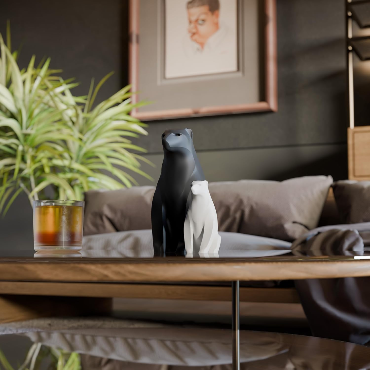 Modern İkili Anne Yavru Ayı Biblo Seti – Siyah Beyaz Minimalist Dekoratif Heykel | Çocuk Odası & Ev İçin Anlamlı Hediye