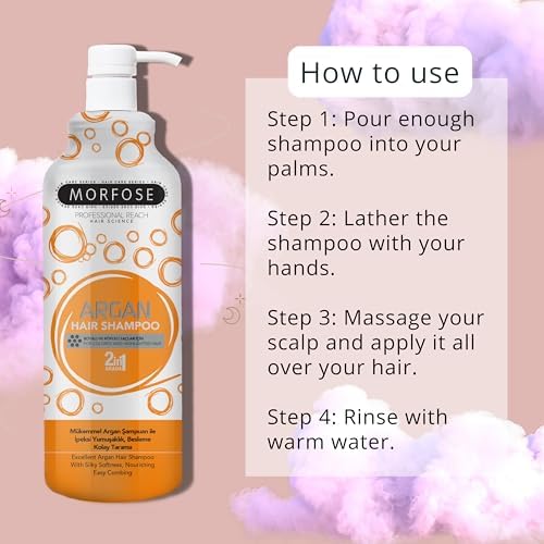 Kullanma talimatları paket üzerindedir. Direkt güneş ışığından uzakta muhafaza ediniz. Gözle temasından kaçınınız, gözle teması durumunda suyla durulayınız ve doktorunuzla iletişime geçiniz. Ayrıntılı içerik bilgisi paket üzerindedir. MORFOSE Şampuan 1000Ml (Turuncu) 1 Paket (1 x 1 Adet)