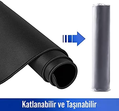 Mouse Pad, Dikişli Kenar, Kaymaz Taban, Büyük Boy Pürüzsüz Yüzey, Baskısız Ofis Tipi Masa Koruyucu, Ergonomik Mouse Ped (90×40 cm – XX Large, Siyah)
