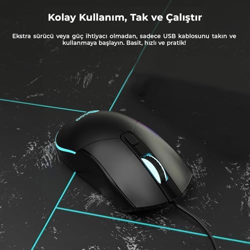 Ayarlanabilir DPI Seçenekleri: 800, 1600 ve 2400 DPI hassasiyet ayarlarıyla her duruma uyum sağlayın. İster ince ayarlar yapın, ister hızlı hareket edin, MS120 sizi asla yarı yolda bırakmaz. Yüksek Tanımlı Optik İzleme: Yüksek çözünürlüklü optik sensör, her hareketinizi kusursuz bir şekilde izler. Komutlarınızı kısa sürede yerine getirerek size mükemmel bir kontrol sağlar. Ergonomik ve Şık Tasarım: Çift renkli, göz alıcı tasarımı ve her iki elle de rahatça kullanılabilen yapısıyla MS120, elinizin anatomik yapısına mükemmel uyum sağlar. Kıvrımlı yüzeyi sayesinde uzun süreli kullanımlarda bile konforu hissedin. Kolay Kullanım, Tak ve Çalıştır: Ekstra sürücü veya güç ihtiyacı olmadan, sadece USB kablosunu takın ve kullanmaya başlayın. Basit, hızlı ve pratik! TÜRKİYE GARANTİLİ MS120 USB Kablolu 2400DPI 4 Tuşlu RGB LED Aydınlatmalı Optik Gaming Optik Mouse Siyah